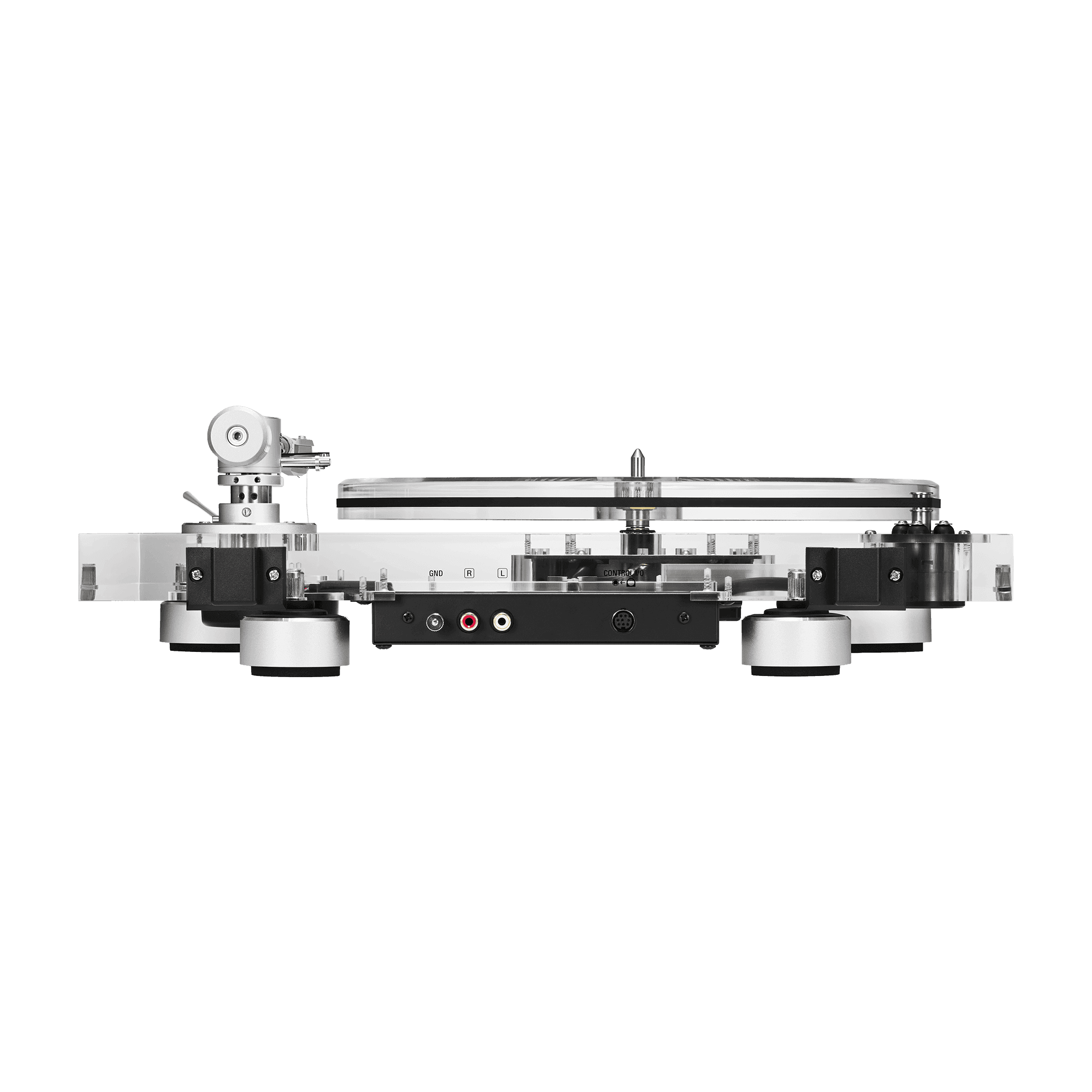 The cartridge comes mounted to an exclusive machined-aluminum headshell with azimuth adjustment, that attaches to the straight, carbon-fiber tonearm. Engineered specifically for this turntable, the new 8.8-inch tonearm also offers VTA adjustment. The lightweight, anti-resonant tonearm tracks smoothly and precisely, utilizing a highly accurate, finely adjustable string-type anti-skate mechanism to counteract any inward pull and maintain proper channel balance. In addition, the tonearm includes two counterweight options (110 g and 130 g) to allow you to use a wide variety of other cartridges, should you so choose.