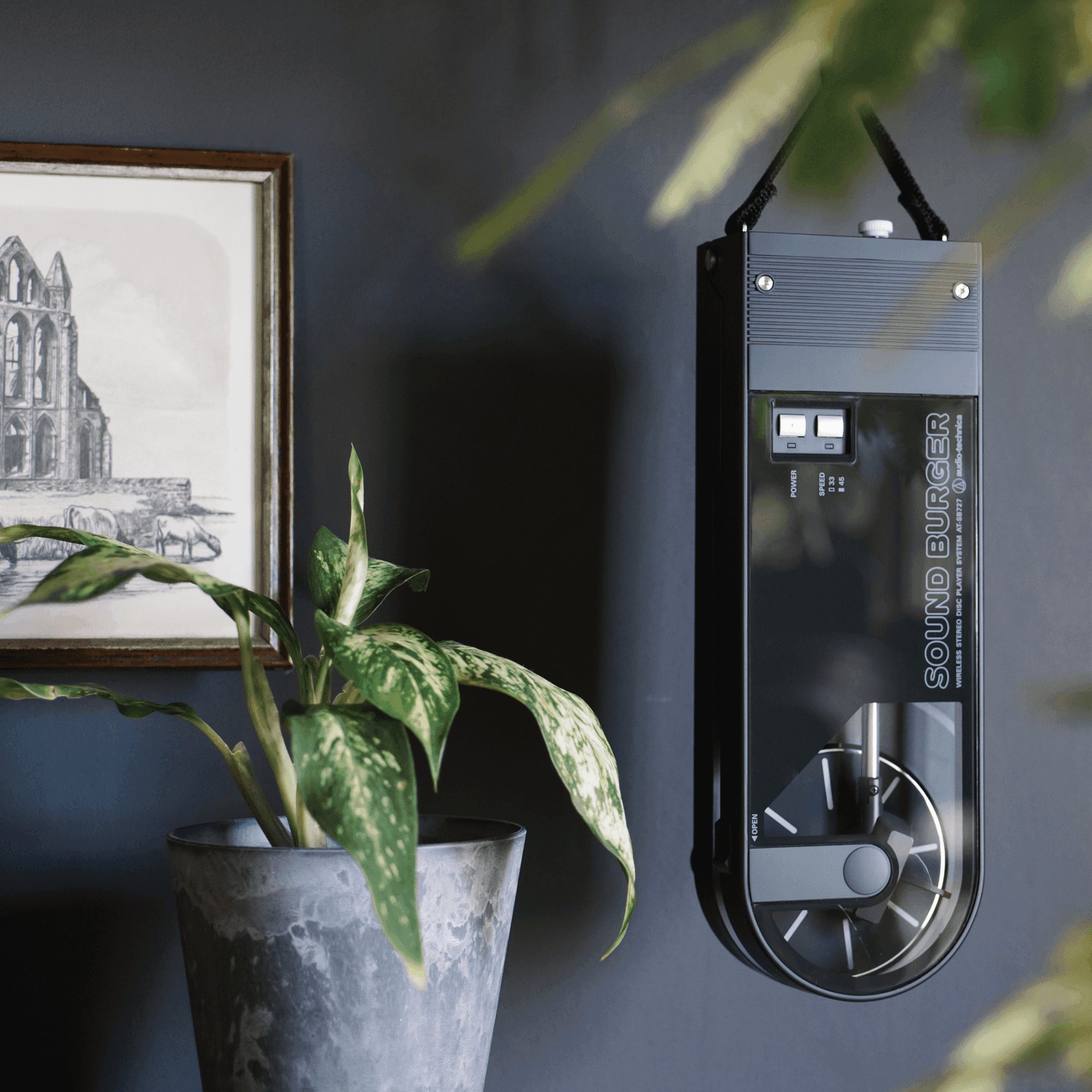 The Sound Burger offers high-quality sound reproduction with a belt-drive system that plays 33-1/3 and 45 RPM records. To achieve both portability and stability, the tonearm employs a dynamic balance system in which stylus pressure is applied via a spring. In addition, a high-precision DC motor maintains stable rotation. This unique turntable features a die-cast aluminum alloy platter with damping design and a replaceable diamond stylus. The original stylus can be replaced by the ATN3600L or ATN3600LC (sold separately). For those looking to further enhance your audio experience, the ATN3600LE elliptical stylus can also be purchased. The Sound Burger also comes with an audio cable for those who prefer an analog, wired listening experience.