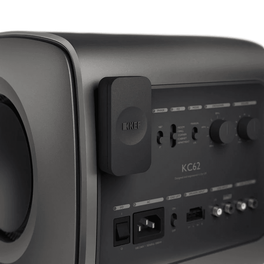 The receiver is also available separately, allowing two KEF subwoofers to receive the same signal wirelessly from the same transmitter.